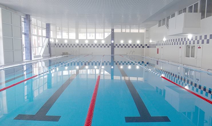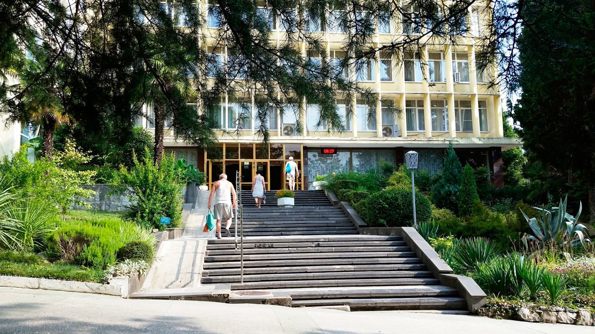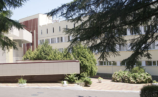В санатории есть бассейн с морской водой, библиотека, киноконцертный и танцевальный залы, тренажёрный зал, площадка для бадминтона и волейбола, теннисные корты.