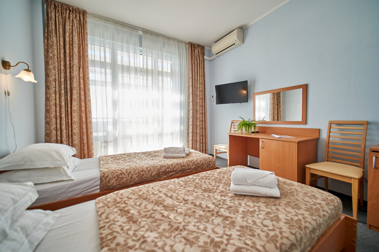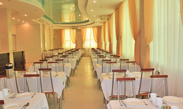 Постояльцам предлагают разместиться в номерах в одном из трех спальных корпусов. Они оснащены необходимыми условиями для комфортного отдыха: телевизор, холодильник, санузлы с ванной или душем, а также балконы или лоджии. Здесь предусмотрено трехразовое питание по системе «заказное меню», где пациентам обеспечивают специальное питание.